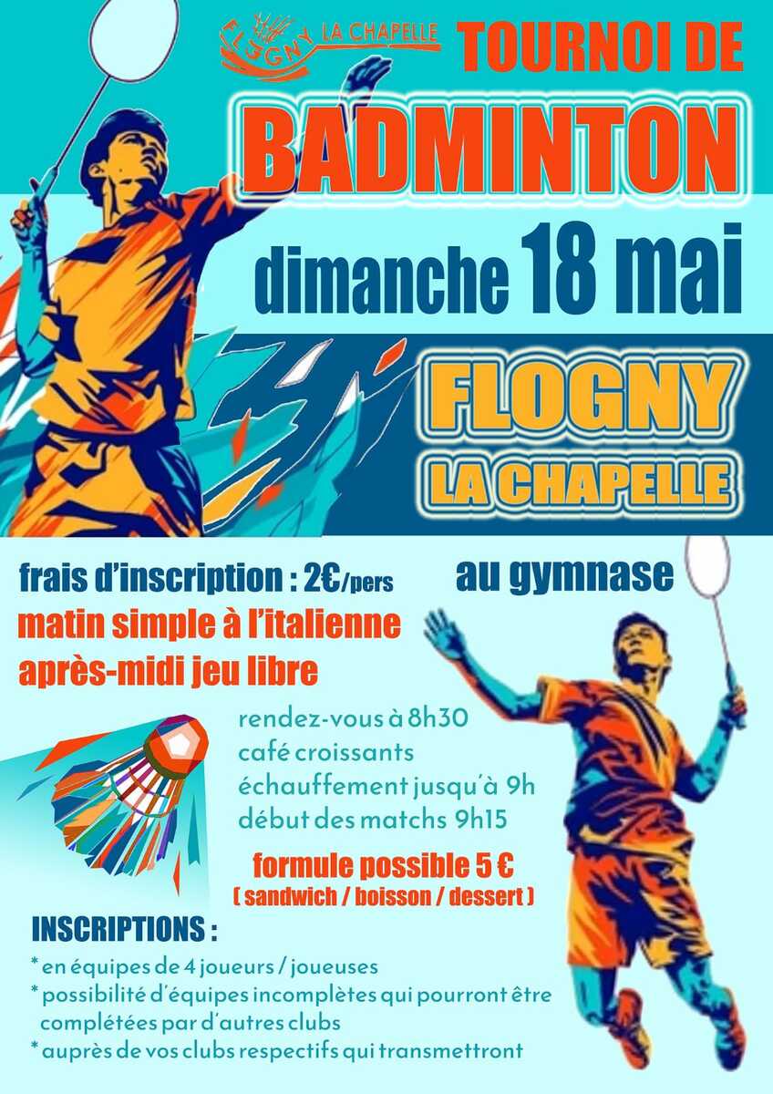 Le club de Flogny la Chapelle organise un tournoi en simple par équipe de 4 le dimanche 18 mai.