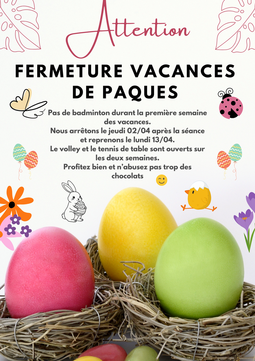 Pas de badmindon durant la première semaine des vacances de Pâques.